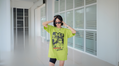 If you are looking for a no-brainer and just want a quality baggy T-shirt for women with minimal prints and graphics, then you should go for the Kook N Keech Typography Drop-Shoulder T-shirt. It’s soft and made of cotton fabric, which feels nice. The pink and white combo looks very fresh and girly. The typography print is simple but cool, not too loud. It’s a long-line t-shirt with drop shoulders, so it gives that chill oversized feel. You can style it in several ways, and you can rock every look. Extremely comfy, easy to style, and totally worth the buy.